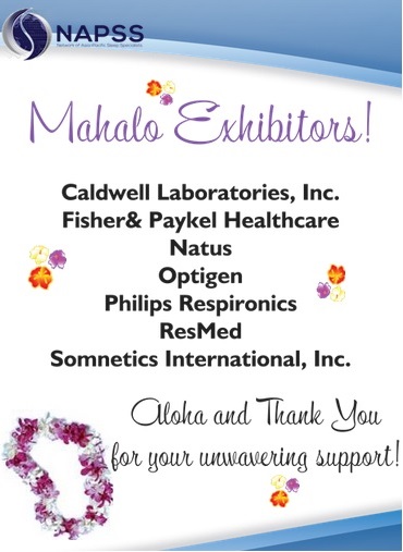Thank you everyone who attended the March 15, 2014 NAPSS Conference. This was well attended and the presentations were not only informative but intriguing! A special mahalo goes out to the Exhibitors for theirunwavering support and aloha for the Hawaii and Asia-Pacific professional sleep community.